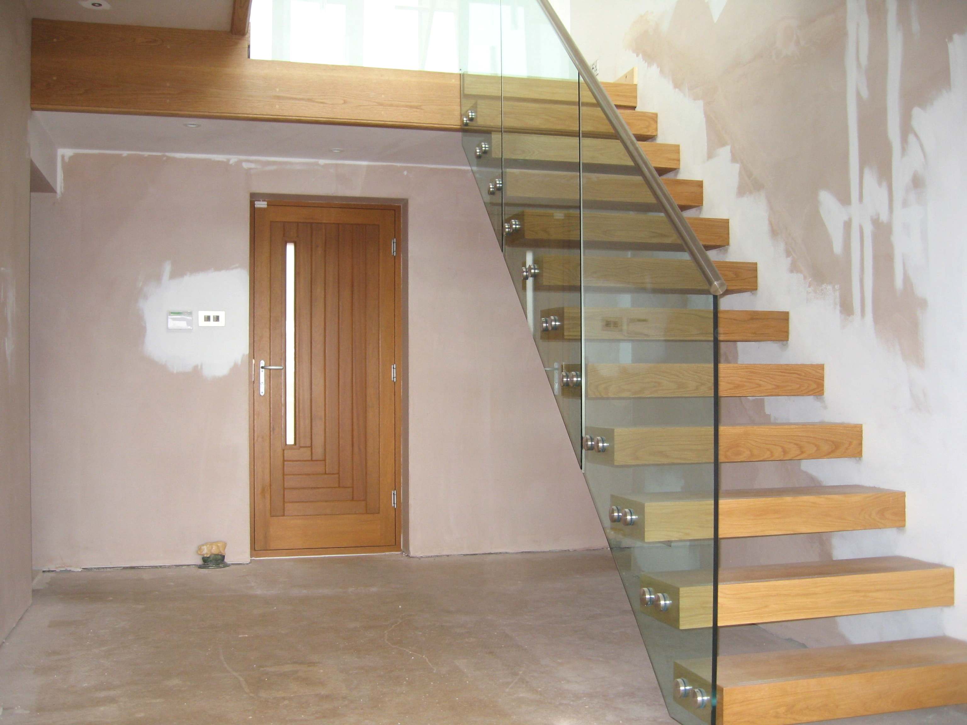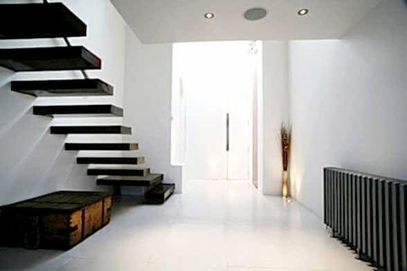 Bu merdivenler tasarımlarıyla ünlüdür. İşletmeler, evler veya tadilatlar için iç veya dış mekanlara kurulabilirler . Birkaç farklı türde korkuluk ve küpeşte seçeneğiyle eşleştirilebilirler; genellikle cam, kablo veya çubuk korkulukla monte edilirler. Bu seçeneklerin çoğu, havada asılı kalma yanılsamasını geliştirmek için direklerin içinde gizlenebilecek bileşenlerle birlikte gelir.